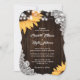 Sunflower Rustic Wood Floral Lace Wedding Invitation