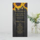 Elegant rustic sunflower wood wedding ceremony program template featuring beautiful bright yellow orange sunflowers bouquets and strings of twinkle lights on a country style dark brown wooden background. +++++++++++ + Personalise it with your your details on both sides.+++++++++++ Suitable for rustic country vintage traditional chic summer garden or autumn fall outdoor backyard weddings. Digital download available.