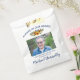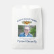 Funeral memorial favour bags featuring a photo of the person you are remembering, the text "always in our hearts", rustic watercolor sunflowers, their name, and a text template that says what the bag contains. Please Note: These bags are sold empty, you will need to fill them with your own plant seeds/bird feed.