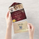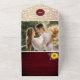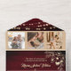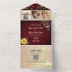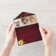 Celebrate your love amidst rustic charm with our botanical-inspired all-in-one wedding invitation! Crafted on rustic burgundy wood, this design exudes warmth and elegance. Adorned with whimsical string lights and vintage boho gold floral lace accents, it sets the perfect tone for your special day. Personalise it with four cherished photos of the happy couple, beautifully capturing your journey together. Simplify RSVPs and share additional information effortlessly with our included website and QR code. Let your love story unfold with this enchanting blend of botanical beauty and rustic allure.
