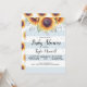 This rustic fall sunflower baby shower invitation features blue stripes with floral watercolor sunflowers on the front and patterned on the back. Sunflowers are popular this year for a fall themed baby shower.