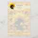 Bright yellow sunflower against an orange background pattern of sunflowers. Customisable stationery with area at top for name and contact info and at bottom for website address -- or choose your own text to enter.