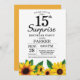 Sunflower Surprise 15th Birthday Invitation. Floral Flowers and White Background. Country Vintage Retro. Kids Girl Birthday. 12th 13th 15th 16th 18th 20th 21st 30th 40th 50th 60th 70th 80th 90th 100th, any ages. Printable Digital. For further customisation, please click the "Customise it" button and use our design tool to modify this template.