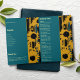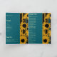 Sunflower Teal Blue Gold Modern Folded Wedding Programme