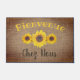 Doormat featuring sunflower trio - "Bienvenue chez nous" - curved text design = Welcome at our place in French.