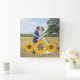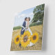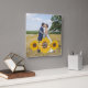 Square Wall Clock featuring a trio of sunflowers with your wedding photo as the background . Great for your country weddings. Alma Wad's unique floral art in a harvest time/summer tone incorporates the couple's names and the date of their wedding into the flowers. To see my entire collection, type "sunflower trio" into the search box.