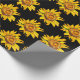 Sunflower Watercolor Flowers Black Wrapping Paper
