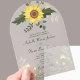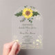 Bring nature’s beauty to your wedding with this rustic yet elegant acrylic invitation. Featuring a transparent, clear design with boho-inspired sunflower illustrations, gilded gold floral accents, and simple calligraphy script, this modern invite combines botanical charm with sophisticated style perfect for a romantic, nature-inspired celebration.