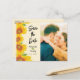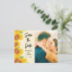 Sunflower themed wedding photo save the date postcard! Our design features painterly yellow orange sunflowers to create this fall or country style arrangement. Add your own photo to customise your save the date postcard. Perfect for a fall or country style wedding or for those who love sunflowers.