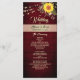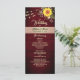 Country, elegant, modern, country, rustic wood burgundy wedding menu with sunflower, gold gilded floral lace and string lights. Perfect choice for fall weddings.