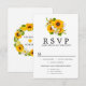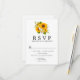 Rustic sprig of yellow sunflowers, white daisies and wildflowers decorates the top of this pretty floral RSVP card. The back contains a rustic sunflower and daisy wreath with the wedding couple names and yellow heart in it. This is part of the Sunflower and Daisy collection that contains many coordinating items that you can use to create a elegant and unique wedding stationery package.