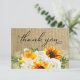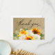 Sunflower & White Rose Floral 2 Burlap Thank You Card