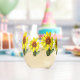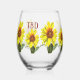 If you adore all things floral, brighten up your collection with this sunflower wine glass. Warm amber petals are a prominent element in this design. Show your personality by choosing a background color and text that reflects your unique style.