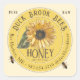 A square yellow label with vintage sunflower illustration. The word "Honey" is written in a decorative brown font.