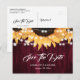 Rustic burgundy and sunflower wedding save the date postcards featuring sunflowers and string lights on a rustic wood background. Matching items available.