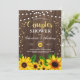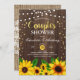Beautiful watercolor sunflower on rustic wood background with gold confetti