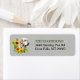 The left side of these return address labels feature a beautiful image of a Great Pyrenees Dog portrait within a bright sunflower and green leaf wreath. Subtle gold confetti adds interest to the background. Your custom text is in green and black at the right. Colourful!
