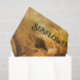 Sunflowers yellow brown beautiful ephemera script. Elegant vintage country floral unique craft decoupage tissue paper. Modern, chic, trendy nature art design. Image copyright Marg Seregelyi Photography.