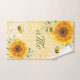 Yellow, white background with a honeycomb pattern. Decorated with watercolored rustic yellow and orange sunflowers and happy bumble bees. Add your own monogram initials as a married couple. Your family name's initial in the middle with a capital letter.