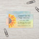 This cheerful yoga instructor business card is decorated with a yellow sunflower on a colourful watercolor background.