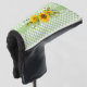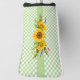 This country / farmhouse design has a beautiful and bright yellow watercolor sunflower bouquet and pastel green and white chequerboard.