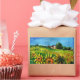 Tuscany landscape,colourful ,vibrant ,expressive beauty of Italian Summer flora and fields in bright yellow orange,green,brown,blue colours,beautiful flowers ,cypress and olive trees,rustic old farm house under the blue sky.Acrylic painting on canvas .
