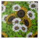 Hand-drawn vector pattern with bouquets of sunnflowers, daisy, camomille and eucalyptus