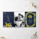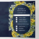 Sunflowers and Eucalyptus 3 in 1 Navy Blue Wedding Tri-Fold Invitation