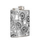 Sunflowers and goldfinches in black and white hip flask