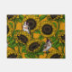 Sunflowers and goldfinches on orange doormat