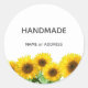 Sunflowers and Handmade Text on White Classic Round Sticker
