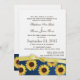 Country Sunflower invitation with navy blue background accented with a pretty yellow bow. Elegant and romantic style printed design. Change text to suit your own needs. Feel free to contact me for additional design and colour options. All parts of this invitation are printed. No actual ribbon or bow is attached.