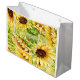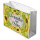 The bag was very nice, sturdy and made a really cute presentation for a gift to someone loving sunflowers. The problem I had was delighting in the prospect of a "large" bag for my gifts - the down size was the bag was way too small for my needs. I know that the dimension issue was on me so it's my fault but bag was not large enough to hold a package measuring about the same but off shape a bit. A personalized bag that doesn't fit - well not so cute. Great - the name fit in the available space perfectly!