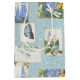 "Sunflowers Blue Flowers Dragonfly Butterfly Garden Medium Gift Bag for gift wrapping." This is a painterly style painting created in oil pastels. Elegant blue Delphinium flowers and sunflowers in a collage with blue butterflies, dragonflies and a bird in a cottage garden setting. All artwork was painted by internationally licensed artist and designer, Audrey Jeanne Roberts, copyright.