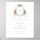 Sunflowers Dusty Blue Hydrangea Crest Monogram Welcome Sign. Dusty Blue Wedding Welcome Sign. White Hydrangea Flowers Greenery Watercolor Wedding Crest Poster