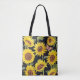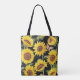 Sunflowers, butterflies, watercolor black backgrou tote bag
