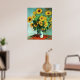 It isn't known if Van Gogh ever saw Monet's "Sunflowers" painting. In one week Van Gogh had painted four sunflower paintings with extreme enthusiasm. Van Gogh liked to study the harmony of the colour of the flowers together with the background colours. Yellow may have been Van Gogh's favourite colour because it helped him feel more cheerful and less depressed.