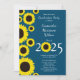Celebrate your graduate with this elegant country sunflowers graduation party invitation with blue! Perfect for a high school, college or 8th grade graduate that likes a beautiful natural vintage look.
