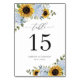 Sunflowers Dusty Blue Floral Elegant Table Number