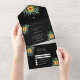 Sunflowers eucalyptus greenery black wedding all in one invitation
