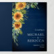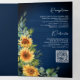 Sunflowers Eucalyptus QR Code Navy Blue Wedding Tri-Fold Invitation