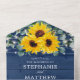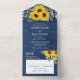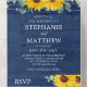 Sunflowers Eucalyptus String Lights Navy Wedding All In One Invitation