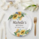 Sunflowers Eucalyptus Woman's Birthday Name Date Paper Plate