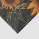 Field of nothing but sunflowers as far as you can see. A beautiful sky that is yellow hues from the sun and the sunflowers.