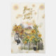 Farmhouse scene, kitchen towels with sunflowers and "home sweet home" text. A happy scene consists of a picket fence, bicycle and black cats with a barn in the distance. Yellow sunflowers are everywhere - growing behind the fence, stuffed into the bike basket, and make a pattern all over the towel background. Towel colour is ecru, with yellow-gold text at the top, which can be changed or deleted as you prefer. This design is perfect for a homestead, or give as a gift to a farm owner.