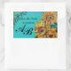 SUNFLOWERS IN BLUE TEAL Save the Date Monogram Rectangular Sticker