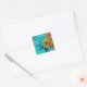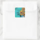 SUNFLOWERS IN BLUE TEAL Save the Date Monogram Square Sticker