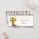 These rustic bridal shower place cards or escort cards match the bridal shower invitation collection shown below and feature a watercolor bouquet of sunflowers inside a brown cowboy boot on the left side with a white and brown overlay sitting on top of a rustic woodgrain pattern background. The line for the guest name and table number are printed in sunshine yellow gold with the words, "PLEASE BE SEATED AT" in brown.