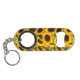 This bottle opener is a keychain as well. There is a picture of sunflowers on it.
