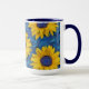 Yellow sunflowers pattern on a blue background. Impressionism painting.
